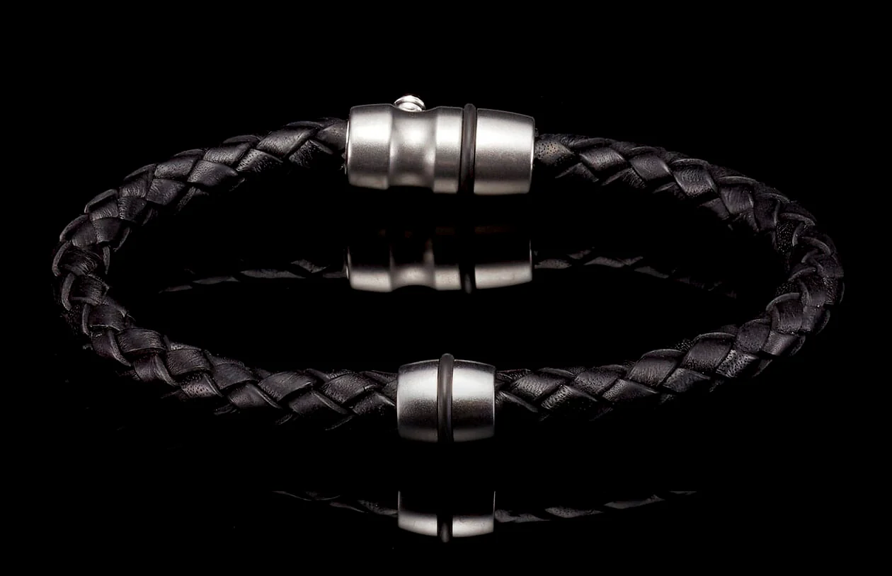 Sometimes simple and precise is all you need. The 'Pluto' features supple braided leather bolo cord finished with a surgical stainless bead and our spring loaded bolt action clasp inspired by the inimitable action of old firearms. Clasp release is inlaid with a spinel gemstone. Easy on the eye, easy on the wrist, perfect with any attire and any occasion.